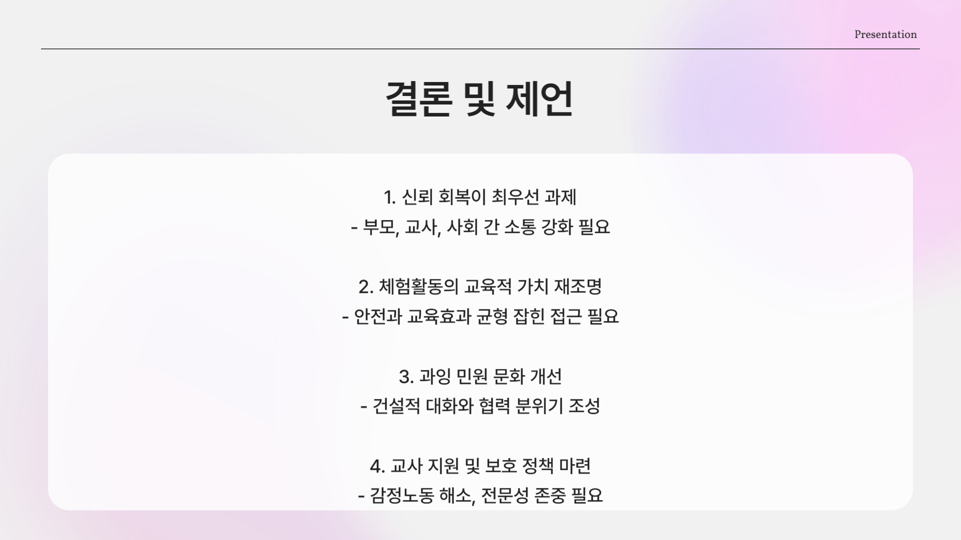 👉 **결과적으로 '교사 이직률 증가', '수업 축소', '아동 체험 기회 감소'**로 이어지는 악순환이 생기고 있습니다.